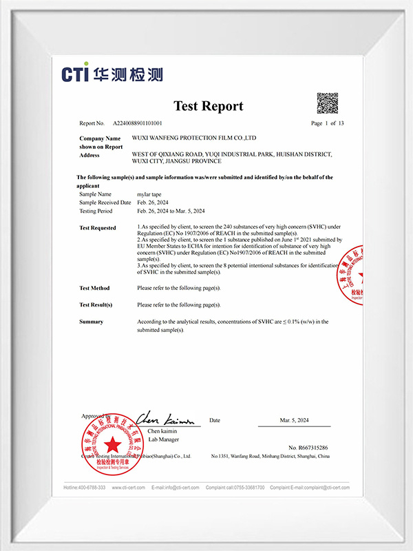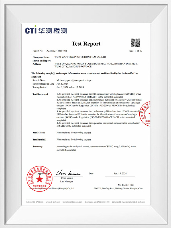 Báo cáo thử nghiệm REACH băng nhiệt độ cao PI
